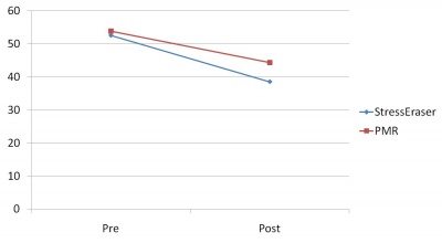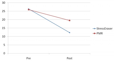 Verbetering bij PostTraumatischeStressStoornis (PMR=andere biofeedback apparatuur)