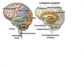 Op onderstaand plaatje is het emotionele brein zichtbaar: aangegeven rechts in bruin.